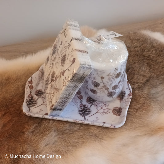 Cadeau - Dienblad + Kaars + Serviettes