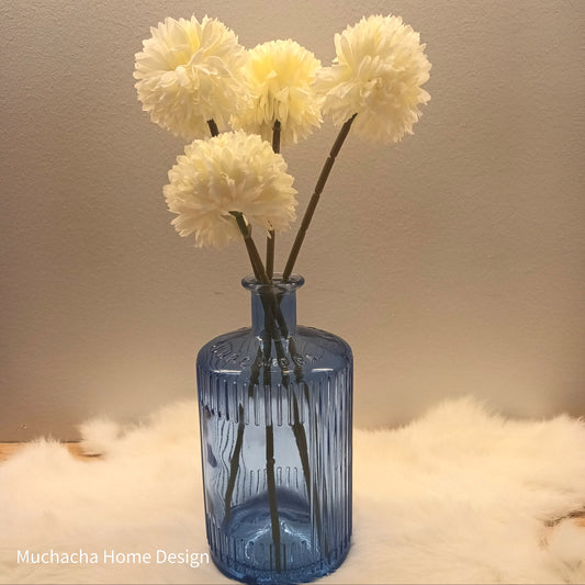 Decoratieve blauwe vaas van glas - witte sierbloemen