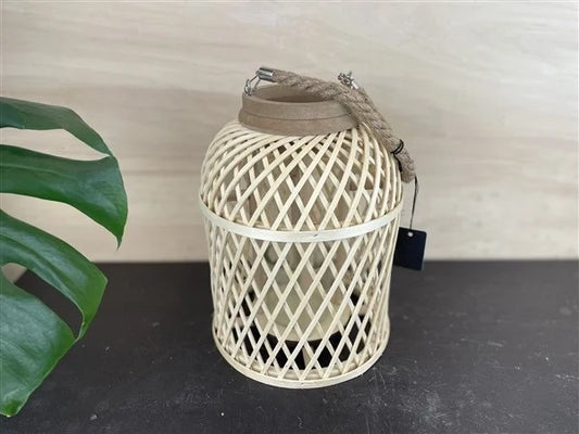 Bamboe Lantaarn M - With rope handle & glass - 21*21*h27,5