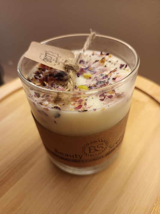 Geurkaars met droogbloemen - Liefste juf - Gepersonaliseerd