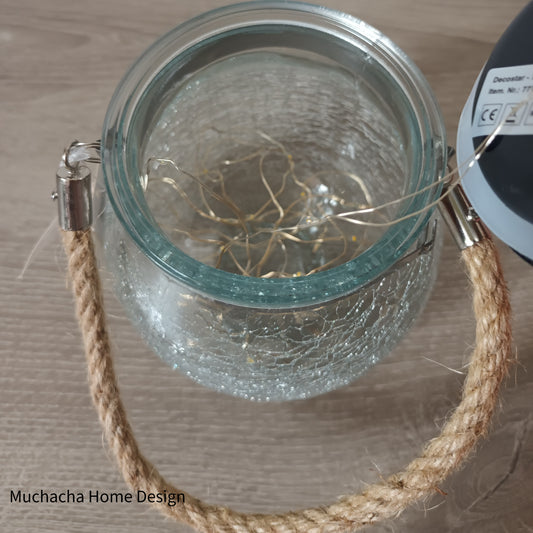 Glazen solarbol met ledverlichting - Sfeerverlichting op zonne-energie - Cracked glass - Handvat
