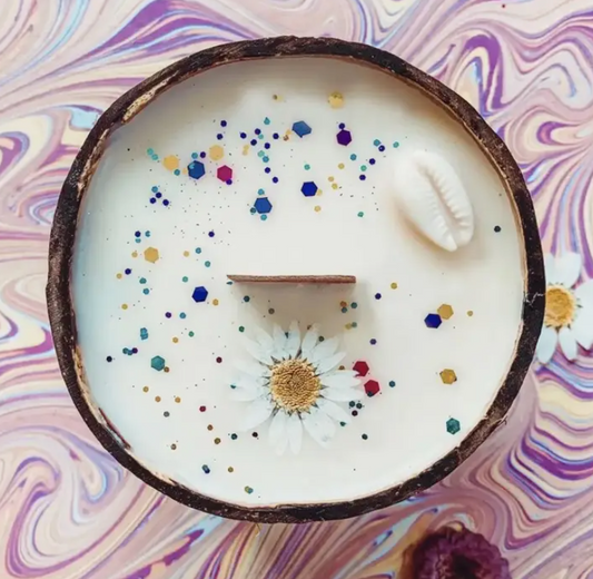 Geurkaars - Kokoskaars - Kokosschelp - Monoï geur - S- Ecologisch - Handgemaakt
