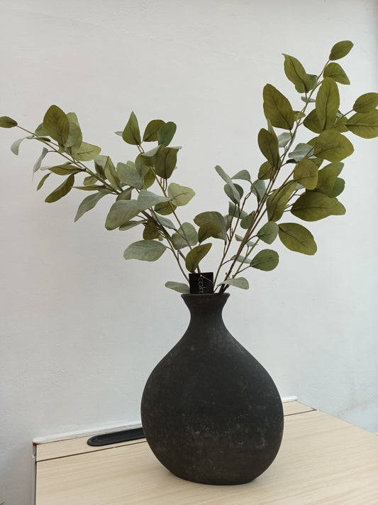 Ibiza plateau - Rotan vaas en kaarsenpotjes op zwart metalen plateau