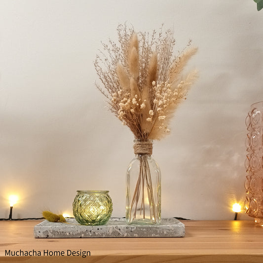 Setje droogbloemen- kaarsenhouder op cement plateau