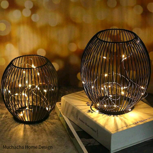 Lantaarn - Zwarte draadlantaarn met glazen kaarsenhouder