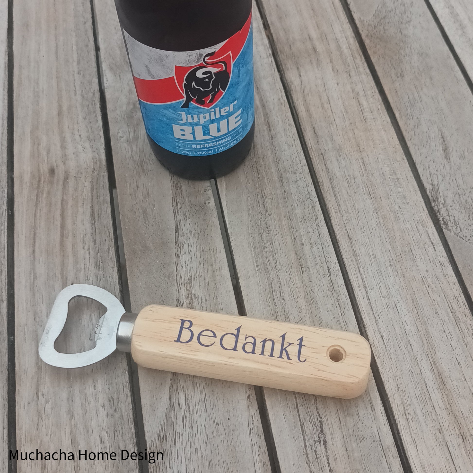 De flesopener is gemaakt van stevig materiaal zoals metaal of hout, en is compact en handig in gebruik. De leuke tekst, afbeelding of quote zorgt voor een aanvulling op het praktische karakter van het item, en maakt het tot een uniek cadeau voor iemand die houdt van een drankje of van huisaccessoires.