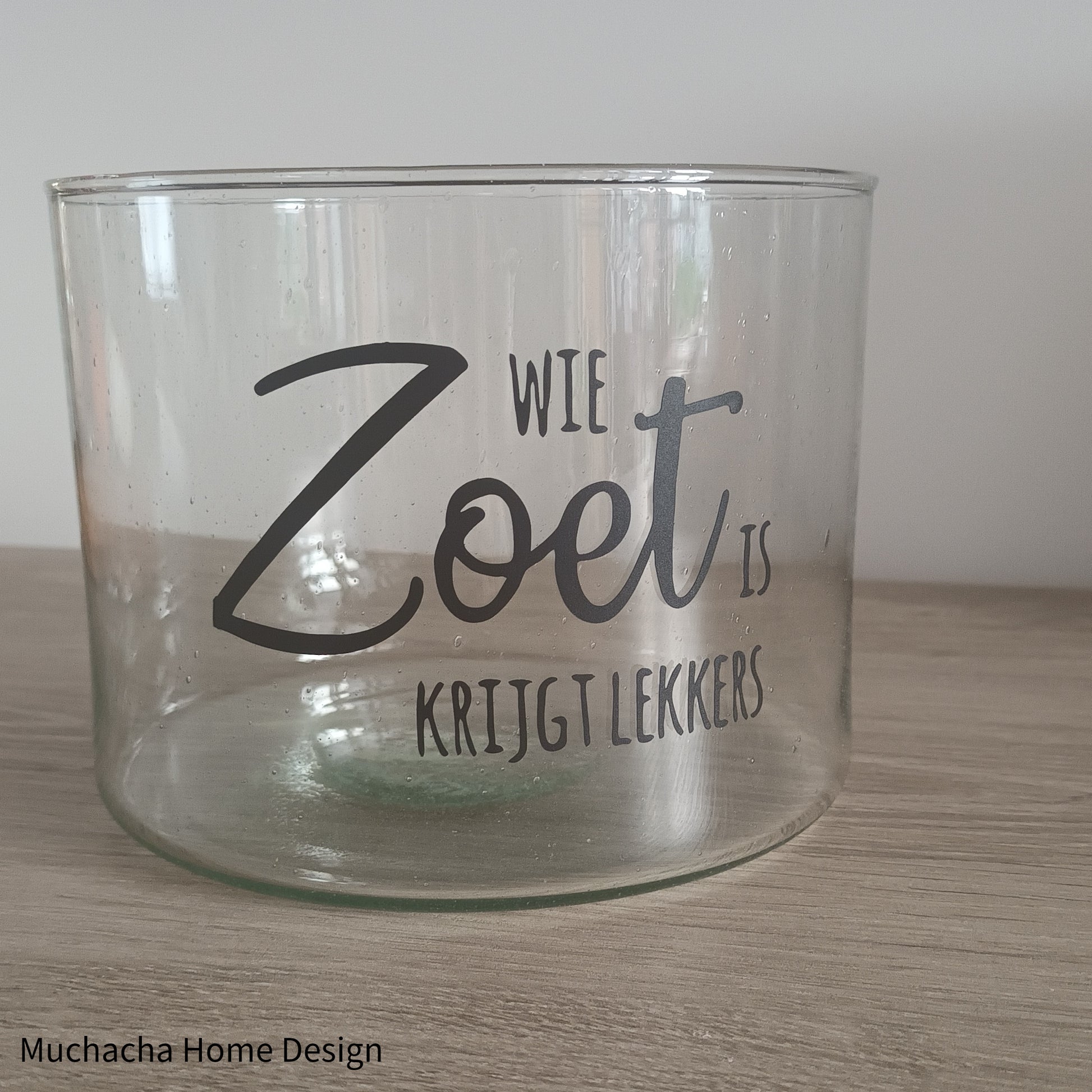 Breng een vleugje gezelligheid en zoetigheid in huis met deze stijlvolle glazen pot van Muchacha Home Design. De pot is bedrukt met de speelse tekst “Wie zoet is krijgt lekkers” — een knipoog naar het Sinterklaasfeest én een perfecte reminder voor alle zoetekauwen.