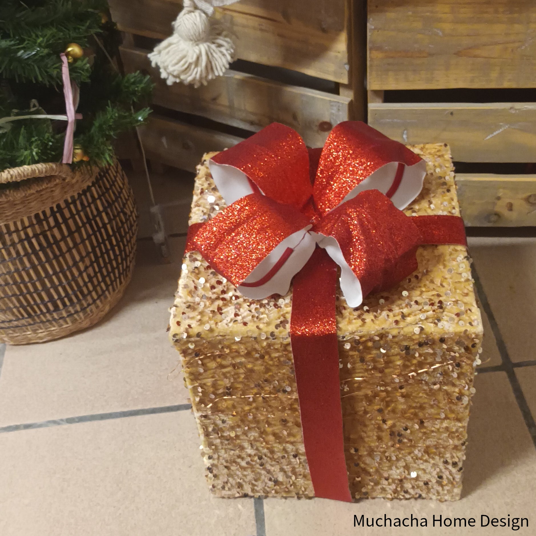 Kerstcadeautjes met ledverlichting rode strik - Op Batterijen - L