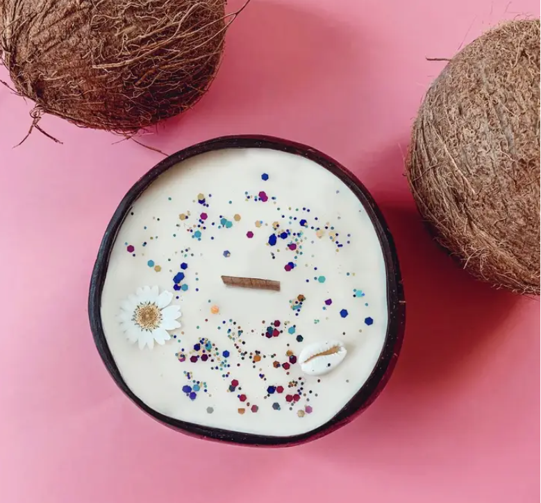 Geurkaars - Kokoskaars - Kokosschelp - Monoï geur - S- Ecologisch - Handgemaakt